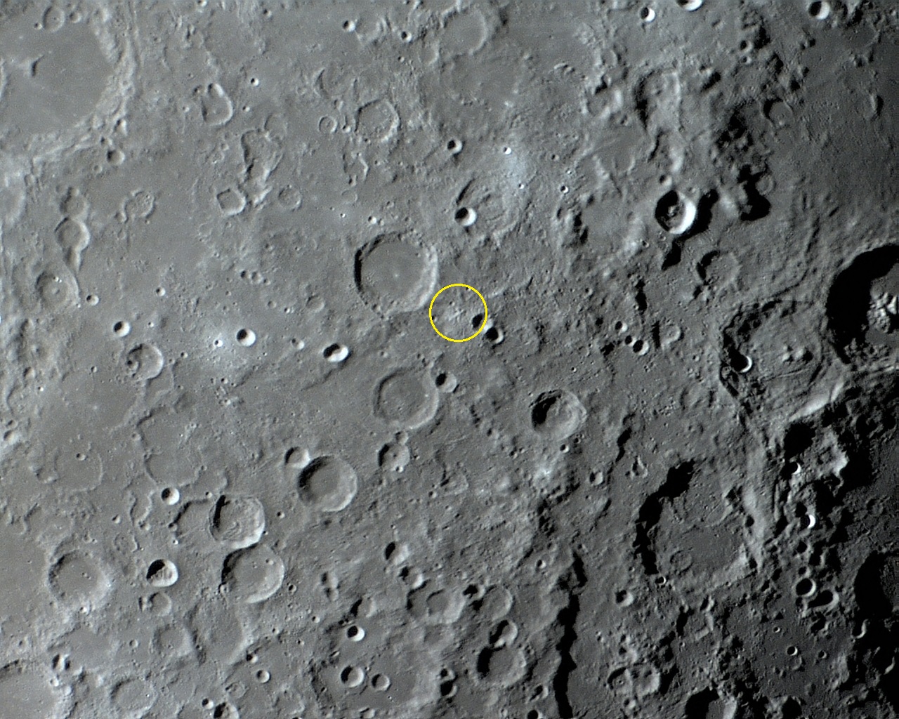 O alvo em questão é uma pequena “formação óptica” que parece com a letra “X”, causada pelo efeito dos impactos de cinco pequenas crateras, que se cruzaram e formaram a referida letra, como se assinalasse o local onde um valioso tesouro está enterrado sob o regolito lunar.