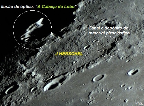 A grande, antiga e desgastada cratera J HERSCHEL.
