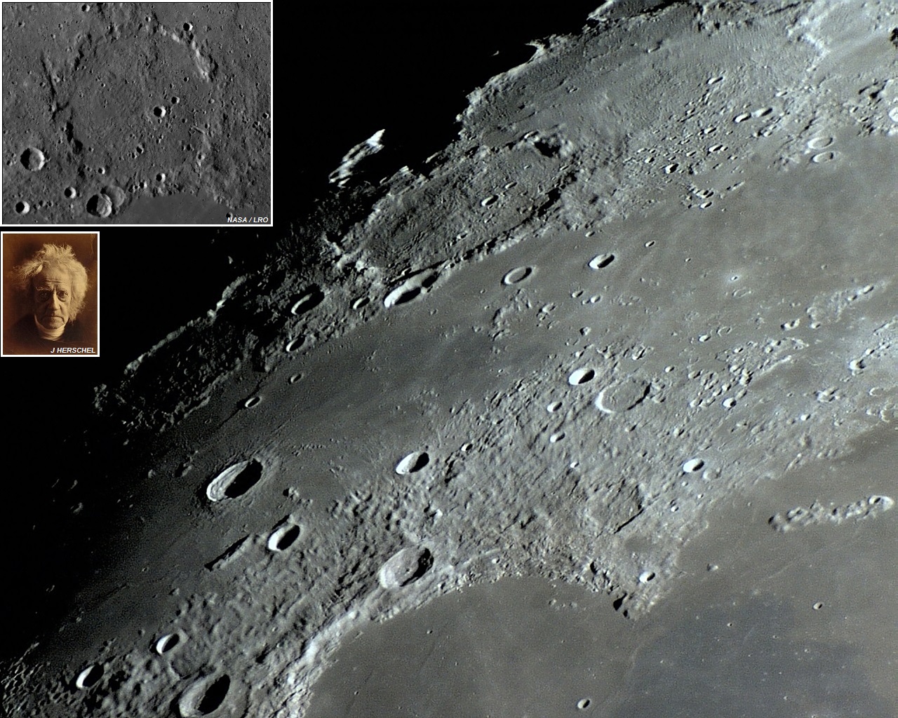 A borda sul de J HERSCHEL faz fronteira com o Mare FRIGORIS e, a borda sudoeste, faz fronteira com as crateras HORREBOW (diâmetro: 26 Km) e Horrebow A (diâmetro: 25 Km).