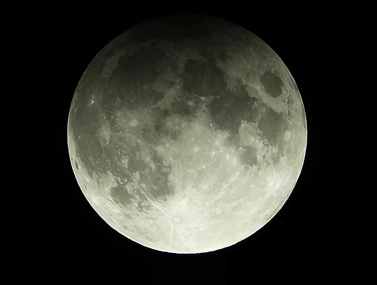 A foto apresenta o registro do instante de máximo obscurecimento penumbral da Lua.