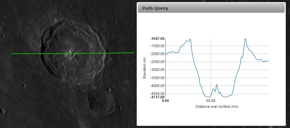 Imagem: O perfil altimétrico W - E da cratera BULLIALDUS - NASA/QuickMap.